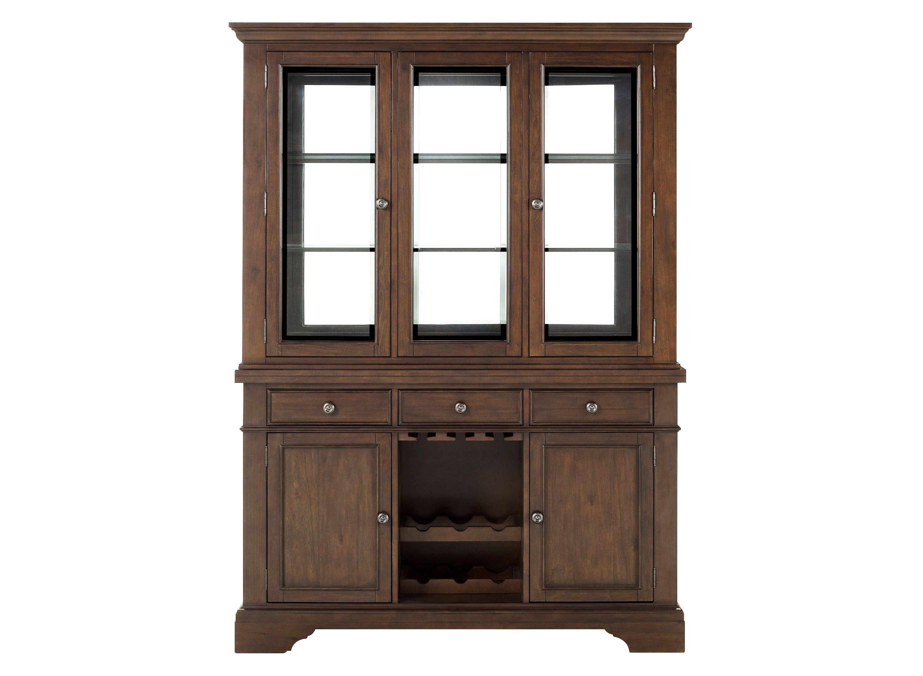 China cabinets and china hutches. China cabinets and china hutches come in a variety of styles and woods, making decorating easy. Opening in 1947, raymour & flanigan furniture sells homewares across the nation. This brand carries a variety of decor for the home, including mattresses, patio sets, and more. Distressed, espresso finish and parquet pattern oak veneers showcase this piece's natural beauty, while features like the wine rack and touch lighting add practicality.